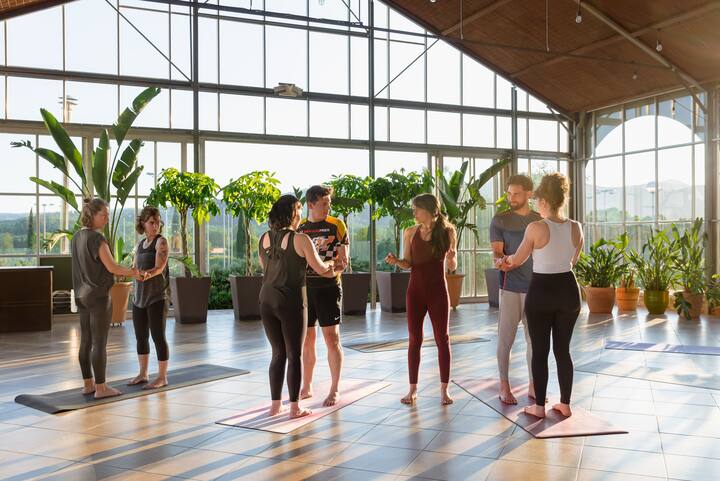 Vertiefen Sie das Vertrauen und die Kommunikation durch Spiele, Bewegungen und Dehnübungen zu zweit oder in der Gruppe. Kombiniert Yoga, Akrobatik und Thai-Massage.