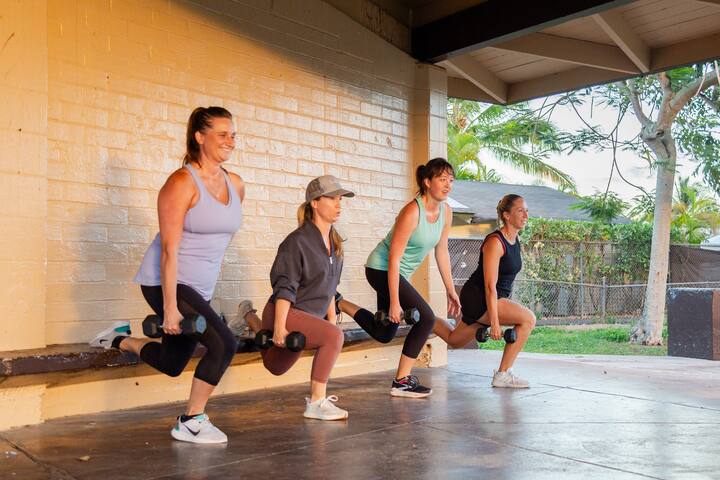Genieße in diesem Gruppenfitnesskurs die malerische Aussicht auf die Insel.