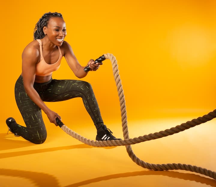Das Zwei-für-Eins-Training bietet ein unterhaltsames Training im Bootcamp-Stil, das du mit einem Freund oder Partner durchführen kannst. Schwitzen Sie zusammen, treiben Sie sich gegenseitig an und bauen Sie Kraft in einer unterstützenden, energiegeladenen Umgebung auf, die Sie beide motiviert, Ihre Fitnessziele zu erreichen.