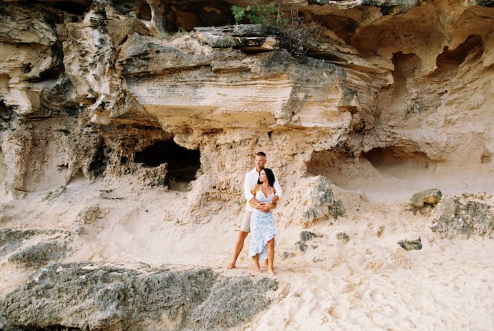Genieße eine Kunstfilmsession für zwei Personen und fange die authentischen Momente und Geschichten eines Paares an einem atemberaubenden Ort fest.
