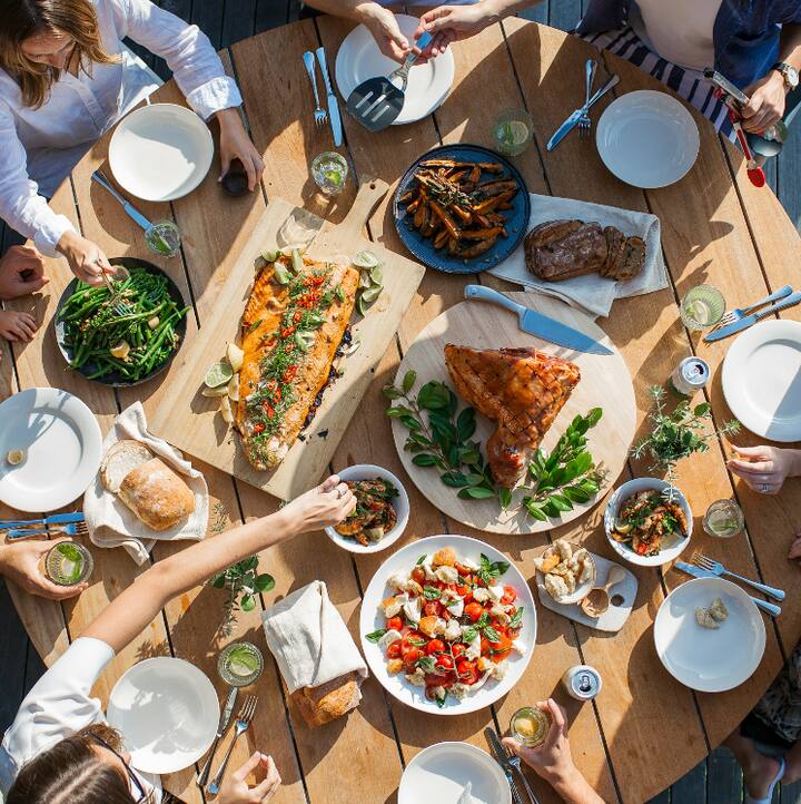 Von Küchenchef*innen zubereitete Gänge: 2 Proteine oder vegetarische Vorspeisen, 2 Beilagen, 1 Dessert. Zusätzliche Menüpunkte können auf Anfrage für 10 $/Gast hinzugefügt werden. Lebensmittel werden separat in Rechnung gestellt