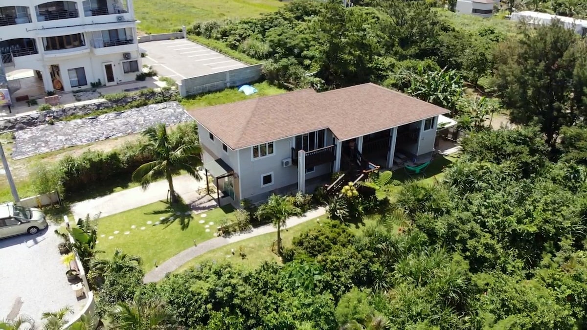 In der Nähe der blauen Höhle! 10 Minuten von der Autobahnausfahrt! 30 Sekunden bis zur R58, 3 Minuten zu Fuß zum Ryukyu Village und zur Bushaltestelle, 11 Minuten bis zum OIST!