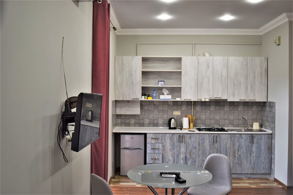 Diese neue Studiowohnung(in der Sayat-Nova-Straße) ist gemütlich und stilvoll. Es ist hell, hat hohe Decken und ist mit allem ausgestattet, was einen angenehmen Aufenthalt ermöglicht, als ob man in einem Hotel wäre. Verfügt über einen kleinen Balkon, WLAN 80mb/s Internet, 42"LED-TV, Kühlschrank, Waschmaschine, Mikrowelle, Toaster. Der Platz der Republik und der Platz der Freiheit (Opernhaus), Cafés/Restaurants, Parks, Galerien, Geschäfte, U-Bahn sind bis zu 5 Gehminuten entfernt. Meine Unterkunft eignet sich gut für Paare und Solo-Abenteurer. Platz für bis zu 2 Personen.