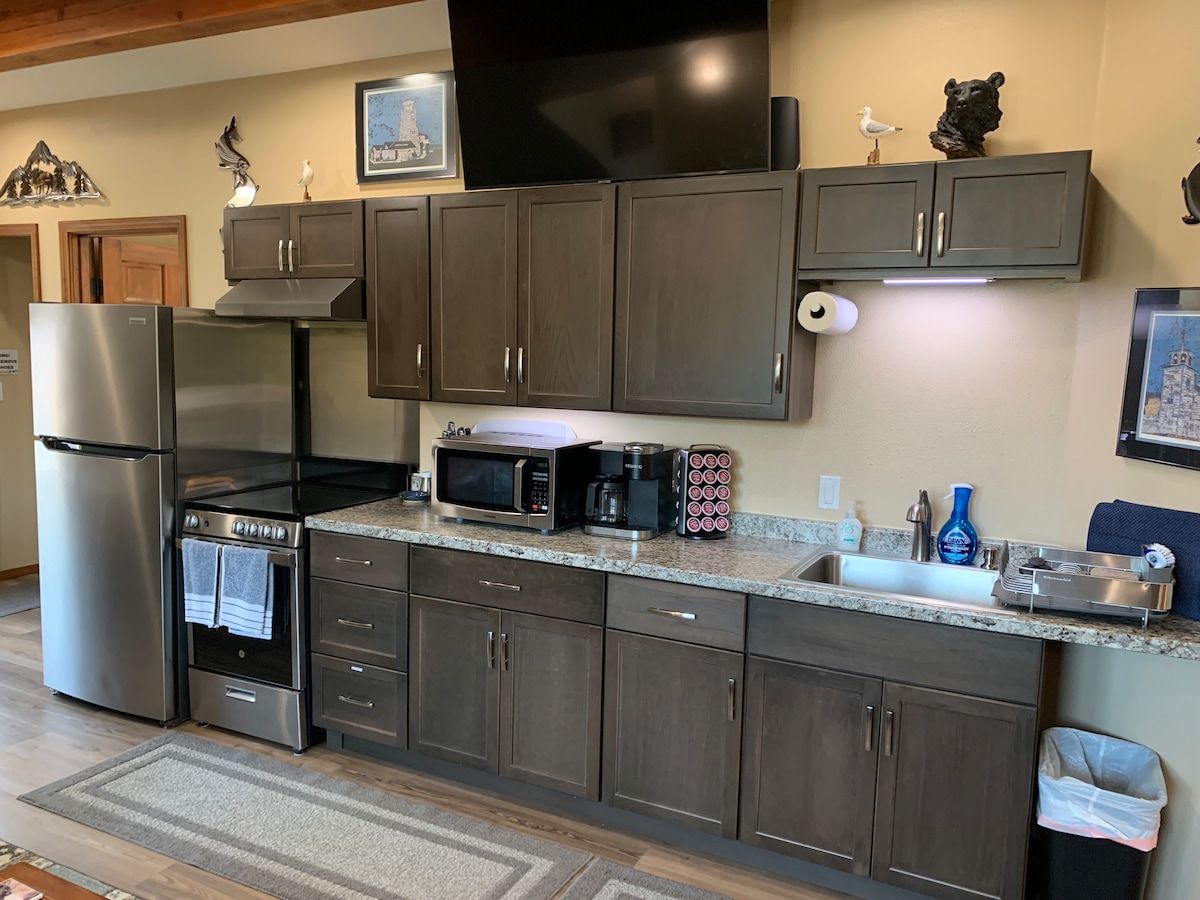 Willkommen bei Exit Glacier Cabins! Unsere brandneue Hütte verfügt über große Fenster und gemütliche Räume, um die atemberaubende Aussicht auf die Berge und den geflochtenen Fluss zu genießen. In der Nähe des Seward Harbor und auf dem Weg zum Exit Glacier, sind wir in der Nähe von allem, was los ist, während wir uns immer noch inmitten von Wildtieren und unglaublicher Landschaft befinden. Unsere weichen Betten, das bequeme Sofa, die voll ausgestattete Küche und die individuelle Dusche machen den Innenbereich super bequem; während unsere Liegestühle, der Picknicktisch, der Grill und die Feuerstelle dir helfen, die Schönheit Alaskas zu genießen.