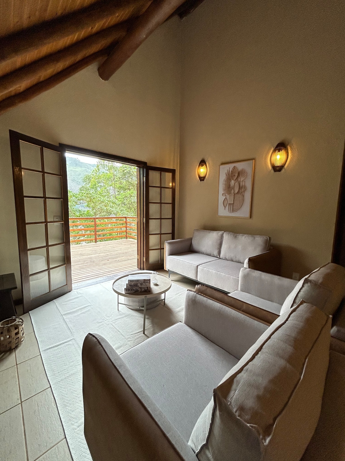 Um lugar único, com personalidade e charme próprio. Cada detalhe foi cuidadosamente pensado para acolher e encantar. Aqui, a natureza é o cenário principal: o verde abraça cada canto e o som suave do rio ao fundo convida à paz. Uma vista de tirar o fôlego, onde o tempo desacelera e o aconchego se faz presente.