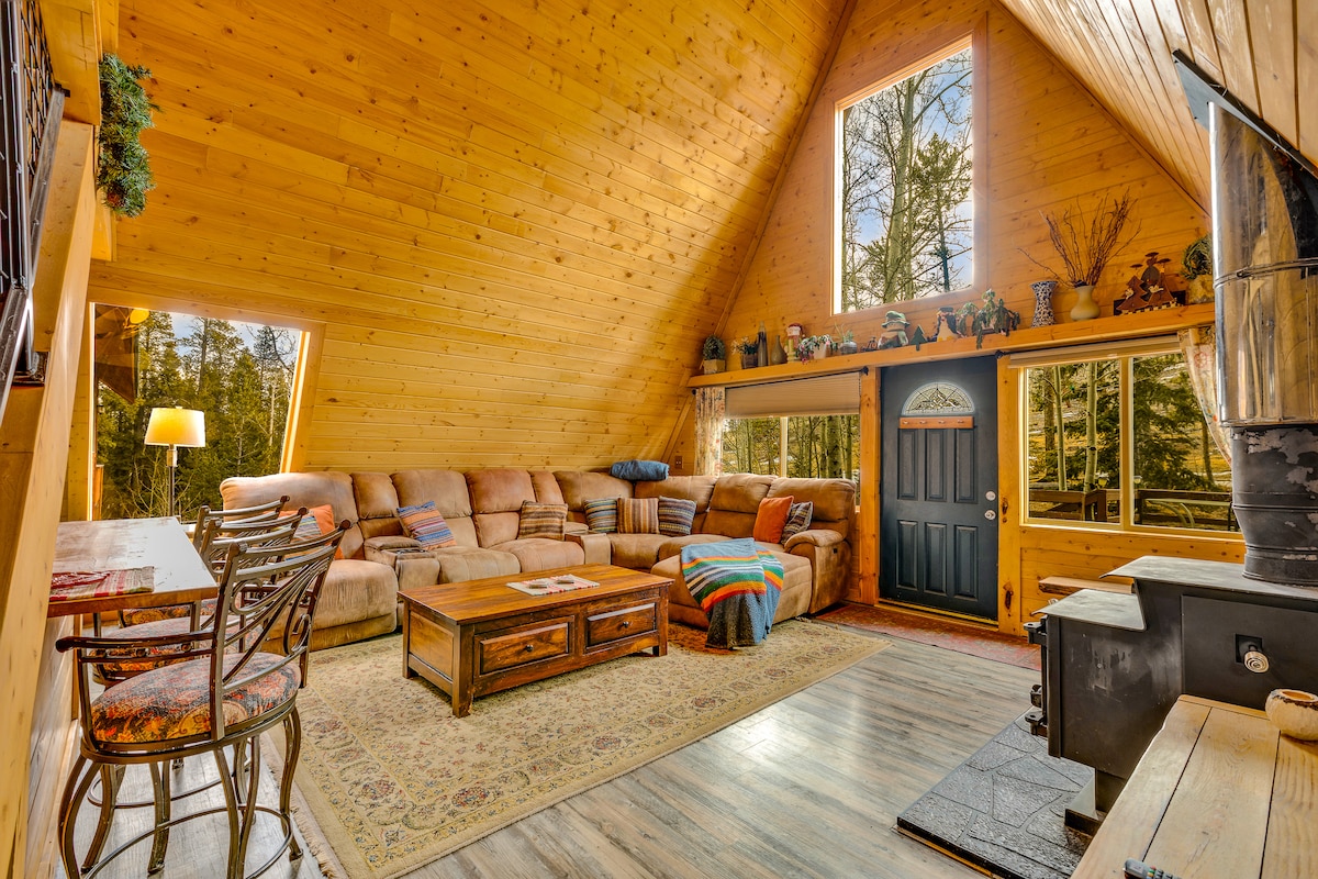 Welcome to your Black Hawk escape—where the air is crisp, the pines are close, and the panoramic mountain views stretch out the moment you walk in. Cozy 2BR/1BA Black Hawk cabin rental in Gilpin County (sleeps 6). Quiet chalet on 1.5 acres near Golden Gate Canyon State Park, close to Black Hawk/Central City casinos, Nederland, and Idaho Springs. Dog-friendly, EV-friendly, with fast Wi-Fi for remote work, a fully equipped kitchen, and a perfect base for hiking, skiing, and Front Range day trips.