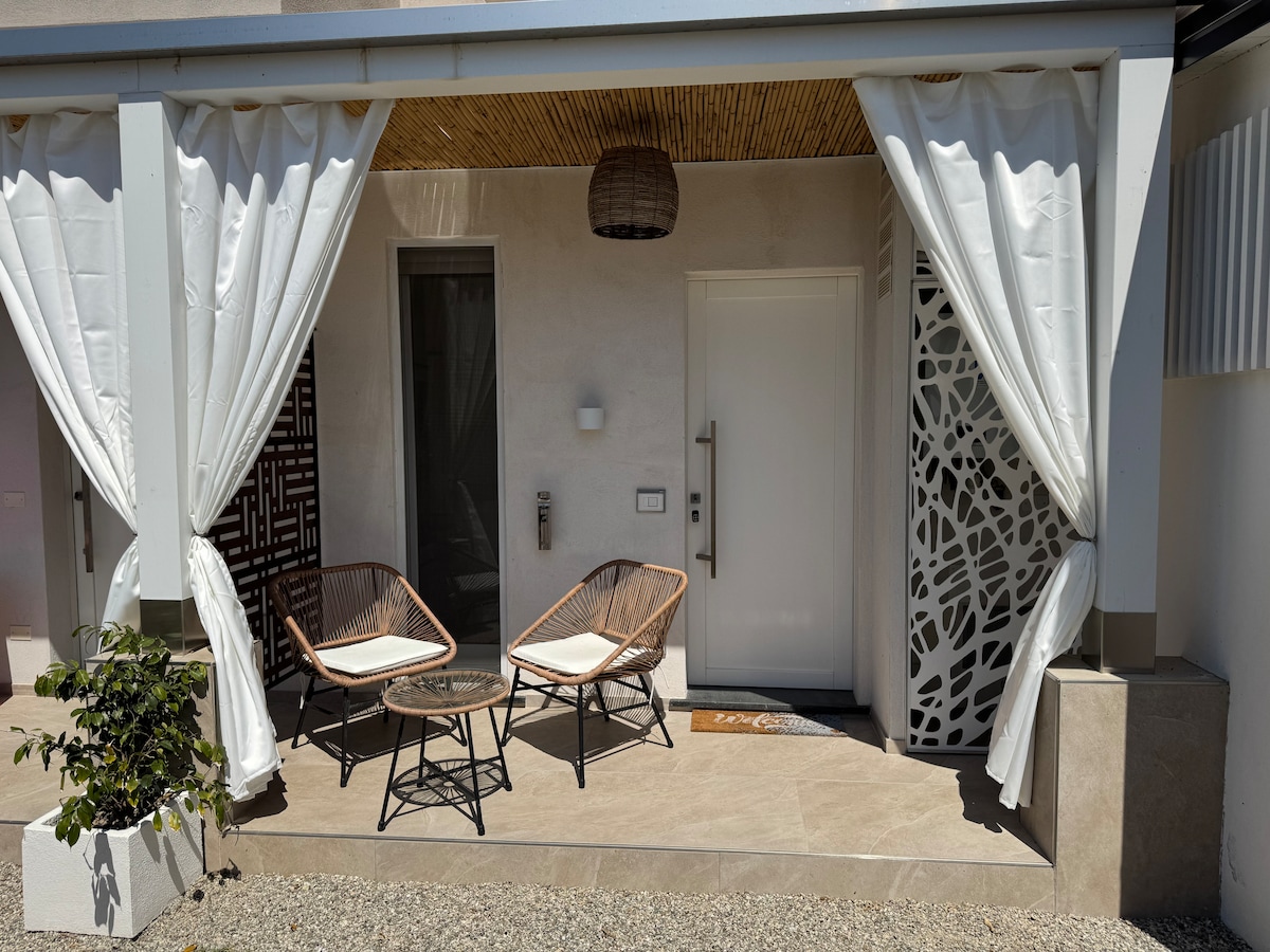 Atemberaubende Wohnung in einem Chalet mit Garten, nur wenige Schritte vom Meer entfernt. Das Haus bietet feine Oberflächen und verfügt über alle notwendigen Annehmlichkeiten, um einen angenehmen Urlaub zu verbringen. Der Garten wird in Kürze fertiggestellt. Es gibt drei unabhängige Räume in der Villa. Jedes verfügt über einen eigenen Eingang und eine eigene Terrasse, der Garten wird mit dem Rest der Villa geteilt. Das Haus befindet sich nur wenige Schritte vom Meer entfernt, vor großen Stränden mit allen Dienstleistungen während der Sommerzeit.