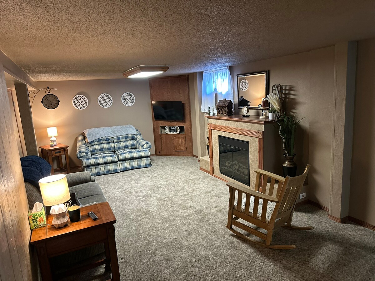 Genieße dieses Jahr ein charmantes Cottage-Weihnachten! Tolle Lage in einer sicheren und ruhigen Gegend bei Augustana Univ & Sioux Falls Seminary & eine kurze Fahrt vom Midco Aquatics Center, Univ of Sioux Falls & Sanford & Avera Hospitals entfernt. Einfacher Spaziergang zu Breadsmith, Bagel Boy, Caribou Coffee, Lewis Drug & HyVee Grocery. 2 Schlafzimmer mit bequemen Queensize- & Standardbetten. Großes Esszimmer. Terrasse mit Grill, Terrassenset, Feuerstelle und Bistro-Leuchten. Parkplätze an der Straße in der Nähe. Geschirrspüler. Keurig-Kaffeemaschine. Kostenlose Wäsche vor Ort.