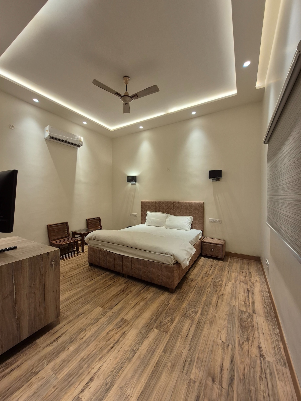 The Barn Dieses 5000 Quadratfuß große, moderne Bauernhaus mit 4 Schlafzimmern und 5 Badezimmern ist das einzigartigste Anwesen, in dem Sie jemals in Punjab übernachten werden. Mit Blick auf einen schönen Obstgarten, ein Buch lesen, den Vögeln beim Zwitschern lauschen, dich neben einem Kamin wärmen, während du eine köstliche Grillmahlzeit genießt, hast du die Qual der Wahl..! Übernachte und feiere hier die fröhlichsten Anlässe mit deinen Liebsten. Sie werden keinen ruhigeren und luxuriöseren Ort finden...!!