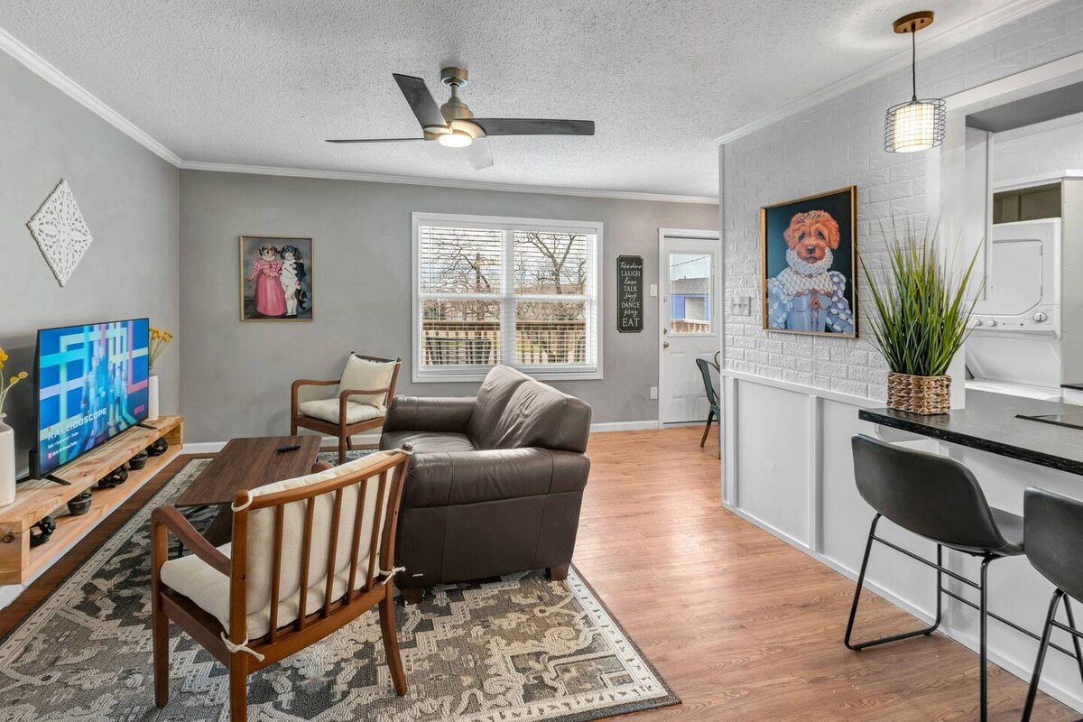 Entspanne dich in einem brandneuen „Mid Century Modern“ Stadthaus im historischen Zentrum von Bryan und nur wenige Gehminuten von Ronin, Black Water Draw, RX Pizza, dem Dorf, Cilantro und vielen weiteren Restaurants entfernt. Das Hauptschlafzimmer verfügt über ein Kingsize-Bett und jedes Zimmer verfügt über einen 58-Zoll-Smart-TV. Logge dich in dein persönliches Streaming-Konto ein oder nutze aus Kulanz unser Hulu, Disney oder ESPN. Entspanne dich im privaten Garten mit einer schönen Aussicht oder koche in der schönen Küche, die eine Keurig-Kaffeemaschine mit Pads und Sahnebehältern umfasst.