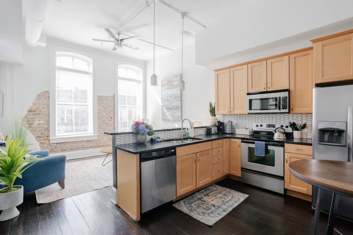 Wir freuen uns sehr, unser Stadtwohnung mit dir zu teilen! Die Wohnung befindet sich im Herzen der Innenstadt von Savannah, GA und nur wenige Gehminuten von den meisten wichtigen Sehenswürdigkeiten entfernt. Du bist nur wenige Schritte vom City Market und Plant Riverside District sowie von vielen Restaurants und Geschäften entfernt. Das Loft ist komplett ausgestattet, um alle deine Bedürfnisse zu erfüllen. Es wurde wunderschön renoviert, um den ursprünglichen Charme des historischen Gebäudes von 1890 zu bewahren. Wir freuen uns schon sehr darauf, dich als Gast begrüßen zu dürfen und dass du dieses Juwel in der Innenstadt erleben kannst!