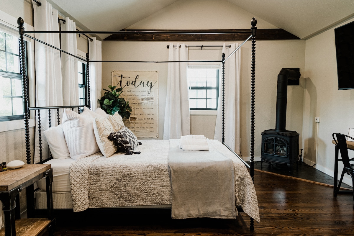 Willkommen! Cappie, Star von Building Outside the Lines auf Magnolia Network, baute dieses entzückende netzunabhängige Ferienhaus als sein eigenes, aber jetzt hast du die Möglichkeit, dort zu wohnen! Dieses schöne 3 Hektar große Grundstück, einst die Swisher Farm, ist heute ein funktionierendes Gehöft, Dutzende von Hühnern und ein großer Garten. Dieses Ferienhaus ist handgefertigt, von der maßgeschneiderten Haustür bis zur maßgeschneiderten 2-köpfigen Dusche. Wir wissen, dass du die Details zu schätzen weißt!