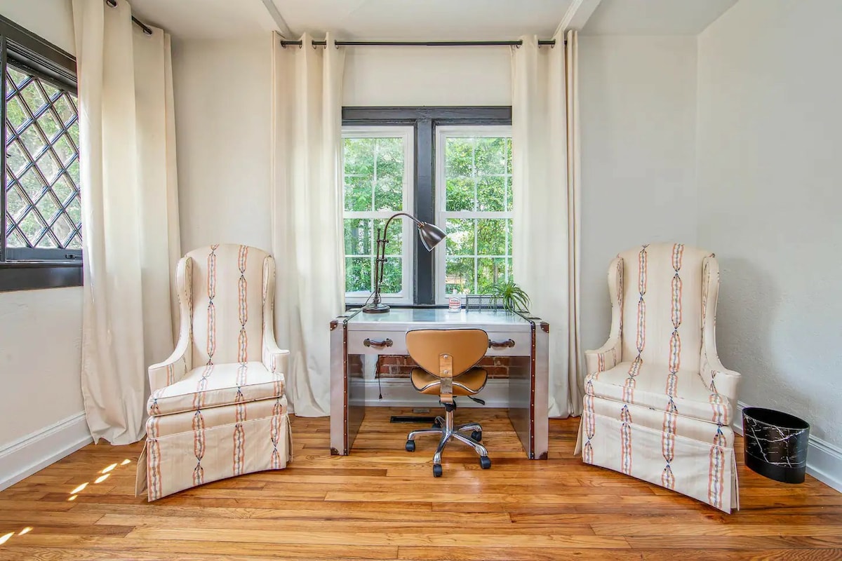 Entdecke deinen gemütlichen Rückzugsort in Fayetteville. Eingebettet in ein sicheres, gut etabliertes Viertel, umgeben von der Schönheit der Natur, findest du eine helle Suite mit 1 Bett und 1 Bad. Sie verfügt über einen großzügigen Fernseher und ein bequemes ausziehbares Schlafsofa. In zentraler Lage zur Innenstadt und zum Fort Liberty ist es ein perfekter Rückzugsort, umgeben von Bäumen. Lade deinen Tesla auf und erledige deine Arbeit in einem idealen Arbeitsbereich für deine beruflichen und kreativen Bemühungen. Dieser Raum ist die perfekte Mischung aus Komfort und Gelassenheit.