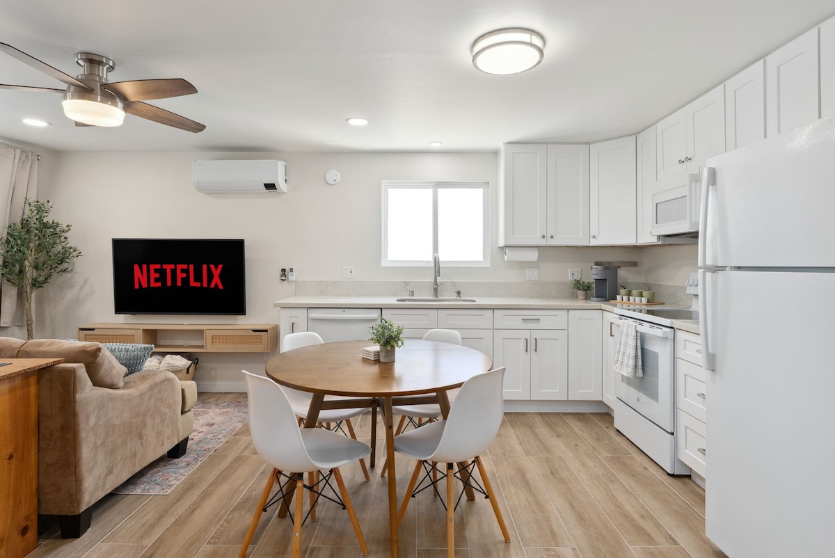 Welcome to your personal resort! This is the perfect Guest House with a salt & heated pool + hot tub. Located in a super quiet & very safe neighborhood in beautiful San Diego. Drive 15 minutes to the beach, downtown, La Jolla, Zoo, stadiums, Sea World, Convention Center + more. Hike next door at Cowell Mountain or Lake Murray. Smart TV, wifi, two zone AC, full kitchen, W/D combo, top quality finishes & furniture. Everything you need for memorable vacation! No smoking or vaping on the property.