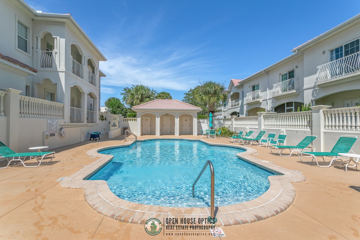 Entspanne dich in unserem schönen Strandurlaub. Diese Wohnung mit einem Schlafzimmer befindet sich in der Nähe von allem, was St. Augustine zu bieten hat. Du kannst zu Fuß zum Strand gehen oder eine kurze Autofahrt in die historische Innenstadt unternehmen. Der Ocean Village Club ist ein abgeschlossener Komplex mit privatem Strandzugang, der nur sieben Gehminuten von deiner Tür entfernt ist, zwei Swimmingpools, Tennisplätzen, einem Grillplatz und kostenlosen Parkplätzen. Diese Einheit im zweiten Stock ist hell und luftig, makellos und schön eingerichtet. Wir sind in Familienbesitz und werden auch familiengeführt.