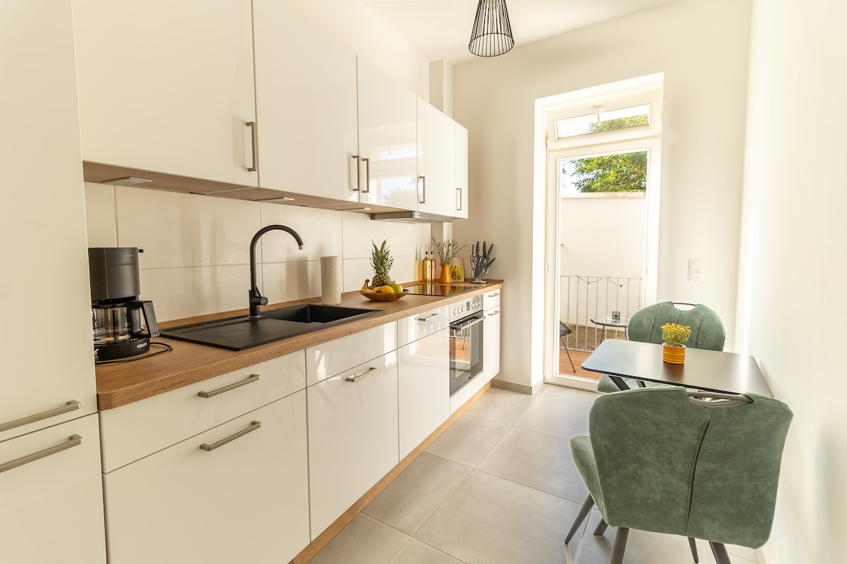 Lehn dich zurück und entspanne – in dieser ruhigen, stilvollen Gästewohnung mit Blick ins Grüne. Allein, mit Partner oder als Familie – Großsedlitz bietet wunderschöne Ausblicke und ist ideal für Spaziergänge. Der Barockgarten ist 300 Meter entfernt, und ein idyllischer Spielplatz ist in der Nähe. Die Umgebung lädt zum Wandern in der Sächsischen Schweiz oder zum Erkunden von Dresden ein. Zeit zum Ausruhen und Reflektieren. Eine Auswahl aus unserem Bücherschatz steht dir bereit.