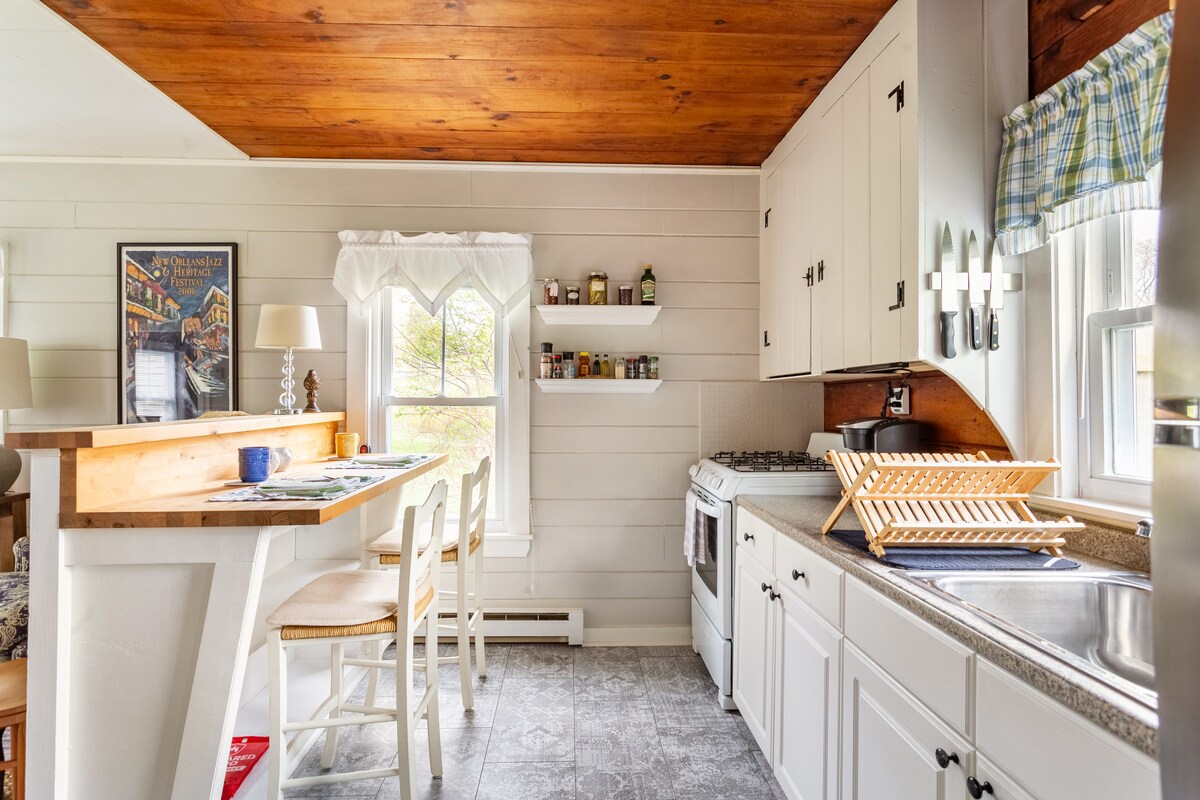 Das Birch Ledge Guest House ist sowohl rustikal als auch elegant und bietet zu jeder Jahreszeit einen gemütlichen Ort zum Entspannen und Erholen. Der erste Stock verfügt über ein geräumiges Wohnzimmer (mit Queensize-Auszugsofa), einen Essbereich und eine kleine Küche. Das Badezimmer verfügt über eine begehbare Dusche. Der zweite Stock ist ein Loft, das über eine Wendeltreppe erreichbar ist und über ein bequemes Queensize-Bett und zwei Einzelbetten verfügt. Das Gästehaus ist von ruhigem Wald umgeben und liegt eine einfache 30-minütige Fahrt nach Portland entfernt.