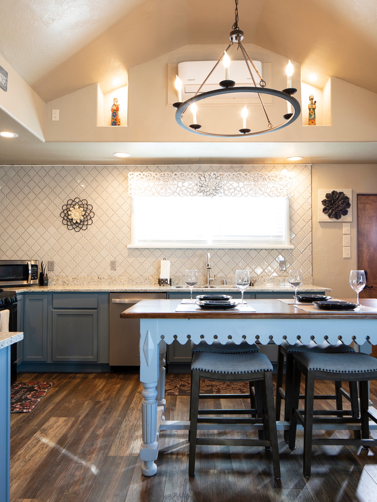 Atemberaubende, neu renovierte Gästecasita in einer charmanten, von Bäumen gesäumten, etablierten Gegend. Nur wenige Minuten von der Innenstadt und den besten Restaurants von Carlsbad entfernt. Schönes Schlafzimmer mit maßgefertigten Möbeln und schönem Kamin. Das Hauptbadezimmer verfügt über eine übergroße begehbare Dusche sowie eine große Badewanne – der perfekte Ort zum Entspannen nach einem anstrengenden Tag in den Höhlen oder bei der Arbeit. Die Küche verfügt über komplett neue Geräte und ist voll ausgestattet.