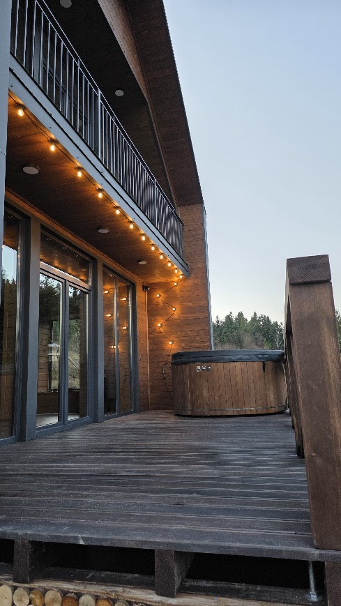 цей барнхаус, має 5 великих ліжок, та все необхідне обладннання для проживання, а саме пральна та посудомийна машини, камін та чан-джакузі,альтанки та мангальні зони з усім необхідним для барбекю, просторі балкони для ранкової кави та тераса для засмагання та вечері, квадроцикл, велосипеди, а також цікаві місця, водоспад, скелі для скелолазення, вітряки, монастир, та озеро поряд і річка