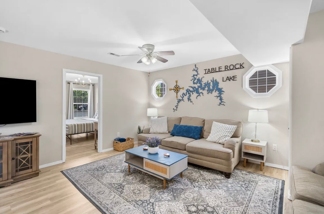 Nur wenige Schritte vom ruhigen Ufer des Table Rock Lake entfernt, eine Viertelmeile von der Cape Fair Marina entfernt, bietet unser einladendes Zuhause den perfekten Rückzugsort für deinen Familienurlaub. Mit vier Schlafzimmern bietet unser familienfreundliches Zuhause reichlich Platz für alle, egal ob du hier bist, um die Sonne zu genießen, das Wasser zu erkunden oder einfach nur zu entspannen und abzuschalten, unser Zuhause bietet alles, was du für einen unvergesslichen Urlaub benötigst.