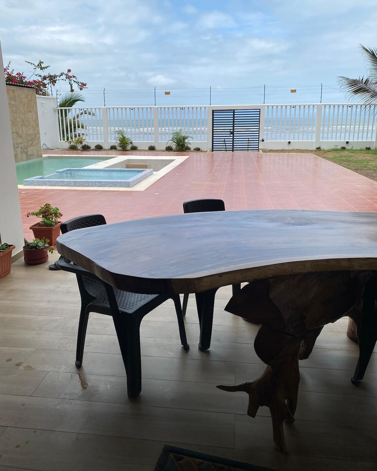 Neues Haus am Meer am besten Strand in Manabi, mit Haushaltsdienst, schafft einzigartige Souvenirs in diesem Familienhaus. Sie werden die schönsten Sonnenuntergänge in einer einzigartigen Landschaft genießen und dabei den Wellen des Meeres lauschen. Alle Zimmer mit Blick auf das Meer, Wohnzimmer mit TV und Esszimmer im Haus, Küche, Waschküche, WLAN. Sozialbereich im Freien mit Pool und Whirlpool ; Pergola mit Esszimmer für 16 Personen, Zimmer, Bar und Grillbereich mit Grill und Küche. Contamos mit STROMGENERATOR