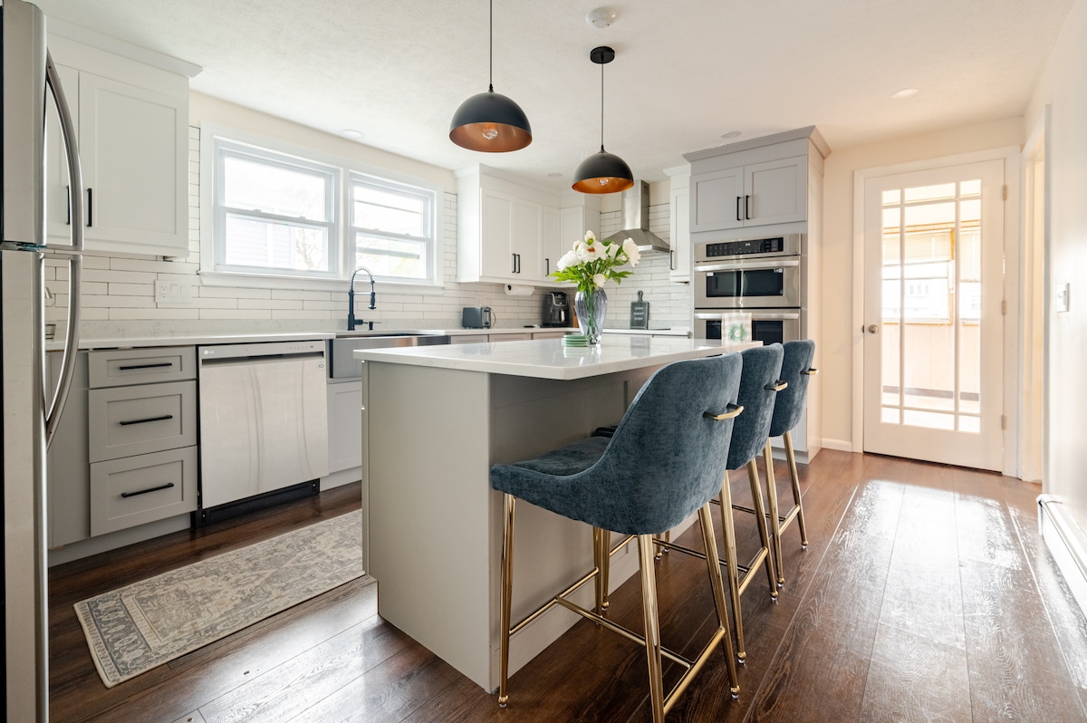 Dieses saubere, neu renovierte 3-stöckige Haus ist perfekt für Familien und Gruppen. Es verfügt über 1 Kingsize-Bett und 2 große Schlafzimmer sowie ein Schlafsofa im Wohnzimmer, 2,5 Badezimmer (einschließlich eines halben Badezimmers im Erdgeschoss) und durchdachte Details wie Snacks, Kaffee, Wein, Ladegeräte, Reisebett und schnelles WLAN. Das Hotel liegt in einem authentischen Viertel von Boston, ca. 20–30 Minuten mit dem Auto oder öffentlichen Verkehrsmitteln von der Innenstadt entfernt. Erwarte einen lebendigen lokalen Charakter, einfachen Zugang zu öffentlichen Verkehrsmitteln und normale Stadtgeräusche.