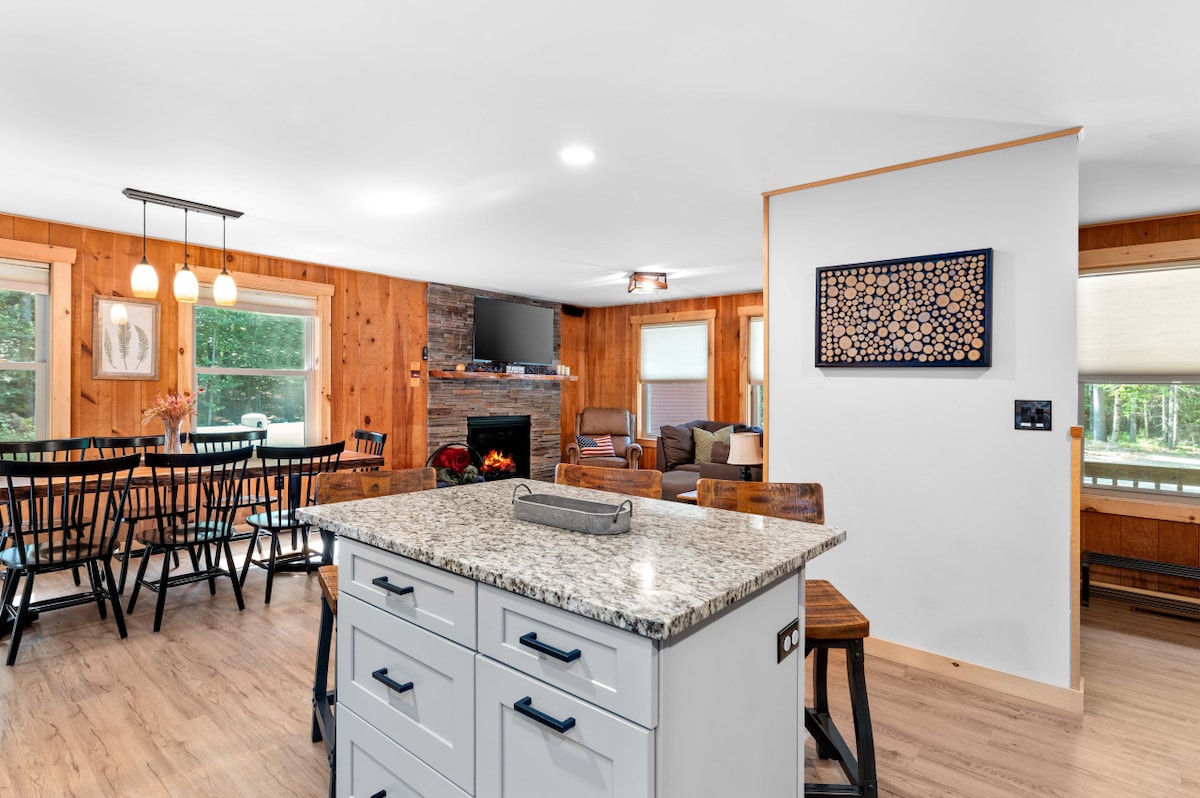 Kick back and relax in this calm, stylish space with a semi-remote cabin experience while keeping the gentle daily living comforts. Right at the edge of the White Mountain National Forest in one direction and in the other direction, a short five minute drive to Kezar Lake this secluded cabin has it all for the nature lover in you! Close to local favorite trailheads for hiking and mountain biking as well having nearby ski mountains and snowmobile trails.