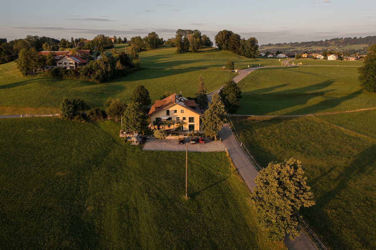 In idyllischer Lage liegt die Ferienwohnung auf 900 Meter, umgeben von malerischer Natur, nur 5 Gehminuten entfernt vom Rottachsee, vor der imposanten Kulisse der beginnenden "2000er" Berge. Auf dem Balkon genießen sie den Blick auf die Hügel und Berge des Allgäuer Voralpenlandes. Die FeWo ist Haustierfrei, dafür gibt es um das Haus Katzen, Hühner, Schafe und Bienen, und vielfältige Möglichkeiten sich an der frischen Luft zu bewegen.