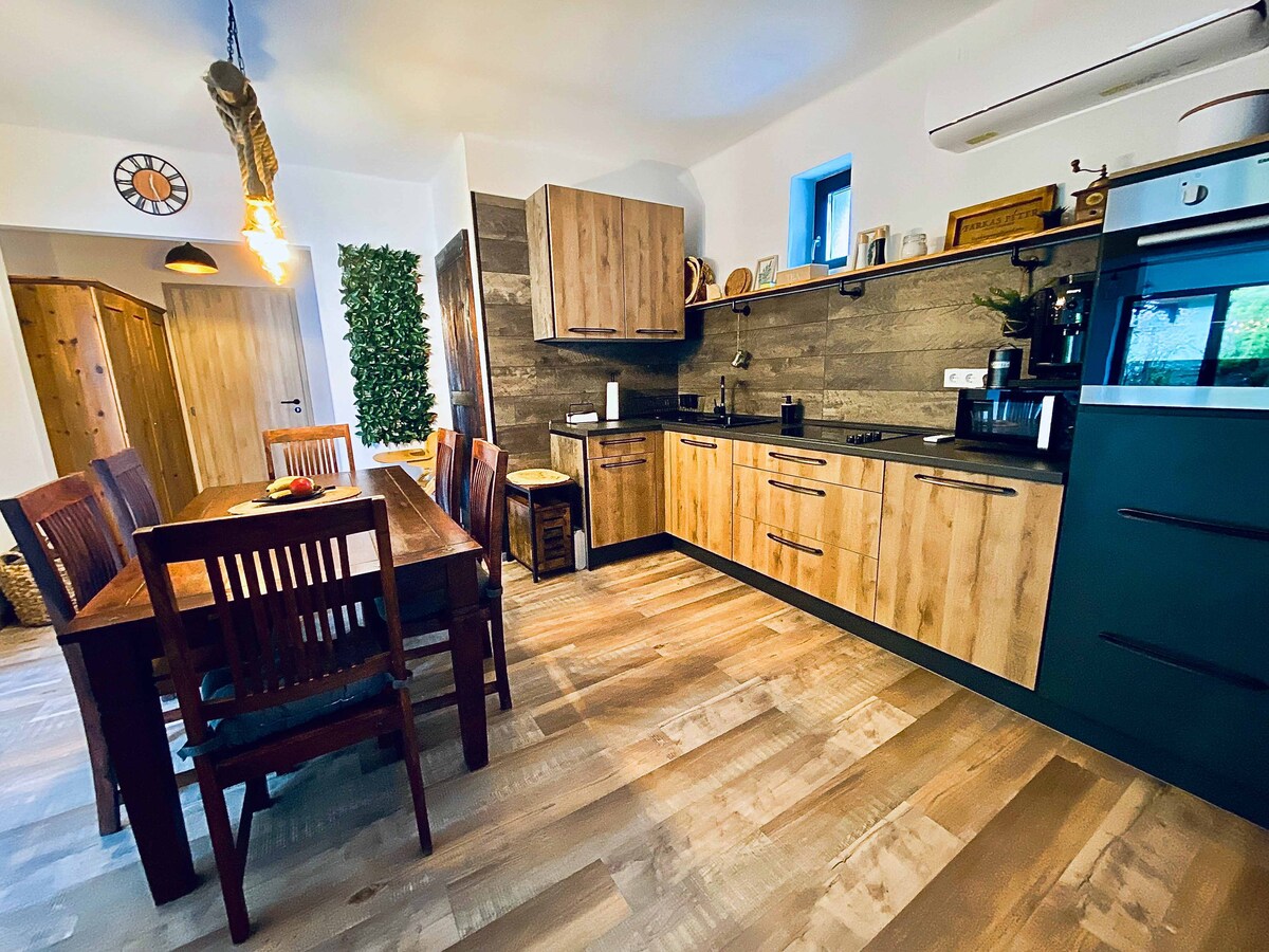 Viel Spaß mit der ganzen Familie in unserer gemütlichen und komfortablen, kürzlich renovierten Unterkunft. Es ist so konzipiert und ausgestattet, dass dein Aufenthalt am wenigsten belastend ist und ein gemütliches Gefühl hat. Bitte beachte, dass der Kamin nur zur Dekoration dient, es gibt eine Zentralheizung im Haus. Der Pool ist nur von Juni bis Ende September in Betrieb. Alle Zimmer haben eine Klimaanlage!