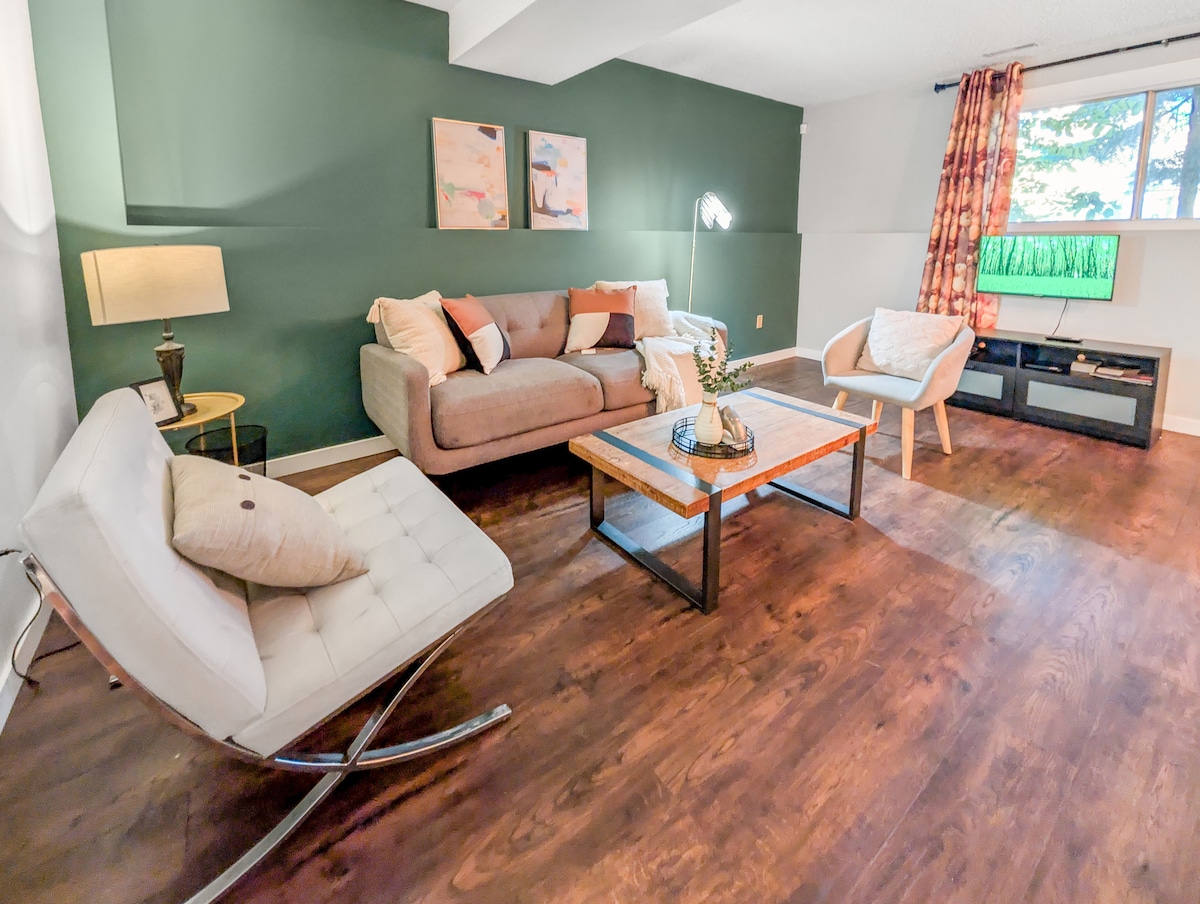 Willkommen in unserem charmanten Airbnb in der Nähe der Innenstadt von Calgary und der berühmten Peace Bridge. Unser einladender Raum präsentiert wunderschöne westliche Dekoration, die das reiche kulturelle Erbe der Region widerspiegelt. Erkunde das pulsierende Stadtzentrum oder mache einen gemütlichen Spaziergang am Fluss. Unser gemütlicher Rückzugsort bietet eine warme Atmosphäre, die dich in den Geist des Westens eintauchen lässt, während du in der Nähe von Calgarys beliebten Attraktionen bist. Die nahegelegenen Verkehrsmittel erleichtern die Fahrt zu Sehenswürdigkeiten in der ganzen Stadt, einschließlich des BMO-Zentrums!