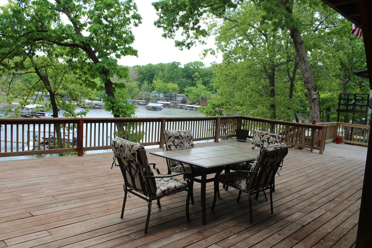 Es ist nur einen Schritt von Ihrem Fahrzeug zu einem spektakulären 180-Grad-Blick auf den schönen See der Ozarks. Unser 2800sf Haus bietet eine seltene Kombination aus ununterbrochenen Aussichten und sanftem Zugang zu über 200' Wasserfront. Genieße die Natur auf 4 Terrassenebenen, darunter eine originale Steinterrasse aus den 1950er Jahren mit Feuerstelle. Die Master-Suite wird Ihnen das Gefühl geben, auf dem Wasser zu leben. 3 Badezimmer 3 Schlafzimmer Wet-Bar Billardtisch. Flipper Propangas-Grill im Freien Gepflasterte Zufahrt Parkplatz für 4 Fahrzeuge
