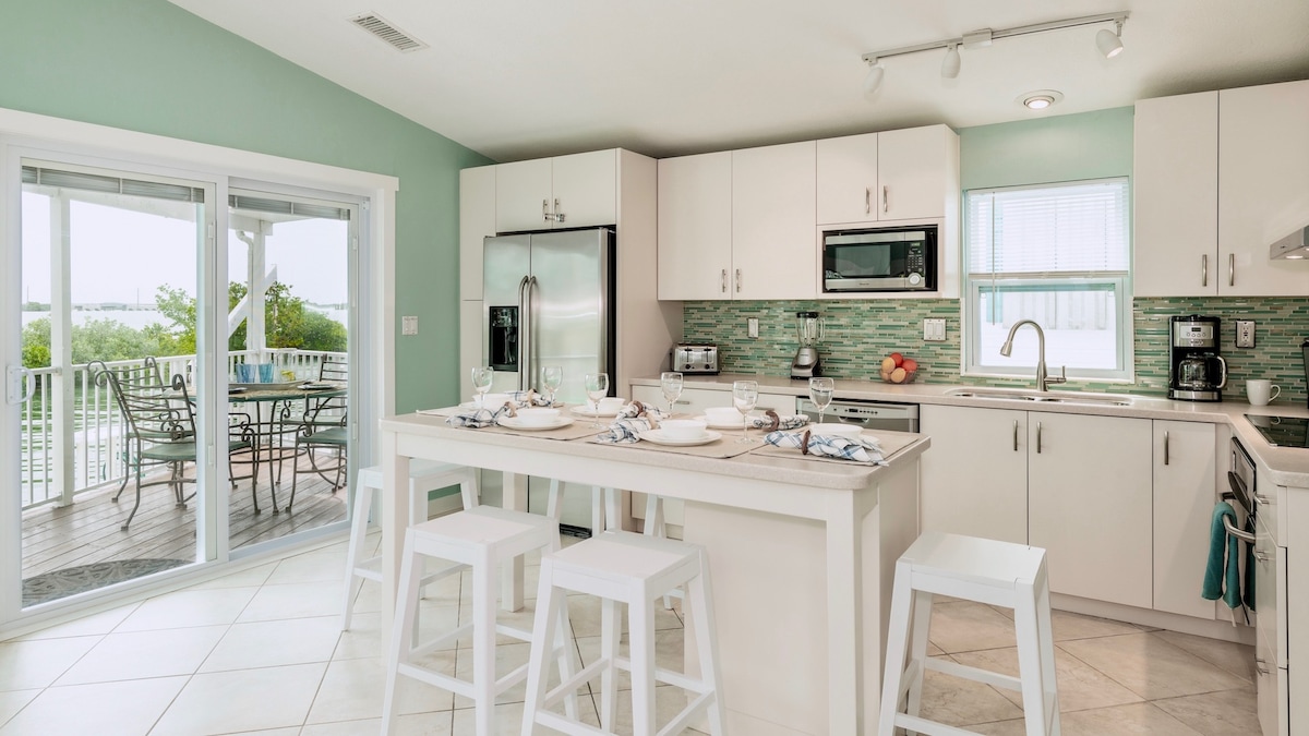 FLEXIBLE, GEBÜHRENFREIE STORNIERUNG INKLUSIVE: Vermietungen sind bis 30 Tage vor Anreise 100% erstattungsfähig! ** Last Key Realty benötigt für alle Reservierungen eine hinterlegte Kreditkarte. ** Der BLICK AUF das Gezeitenwasser ist ein gemütliches, 800 Quadratmeter großes Ferienhaus, das alles hat, was du dir für den perfekten tropischen Urlaub wünschst: Blick auf das offene Wasser von einer überdachten Veranda, eine private Bootsrutsche, Kajaks, Fahrräder und Zugang zu den wunderbaren Annehmlichkeiten des Venture Out Resorts: ein beheizter 80 Fuß langer Pool mit großem Whirlpool und Kinderbecken,