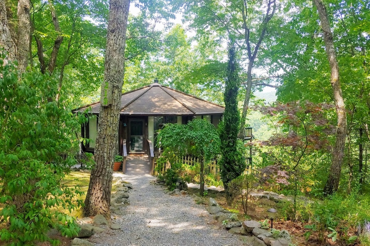 Enjoy your getaway in a peaceful setting in this unique cabin built in 1840 with addition, walk-around porch & deck. *WiFi* 3 streams surround the property with multiple walkway bridges to access the ample yard. Natural firepit with everything you need to enjoy a cozy fire. 4 bedrooms with sleeping space for at least 8 people (Queen, bunkbeds, 3 futons, full cot). 2 full bathrooms, plus an exercise/yoga/meditation room stocked with weights, fitness dvds, mini fridge, and essential oils