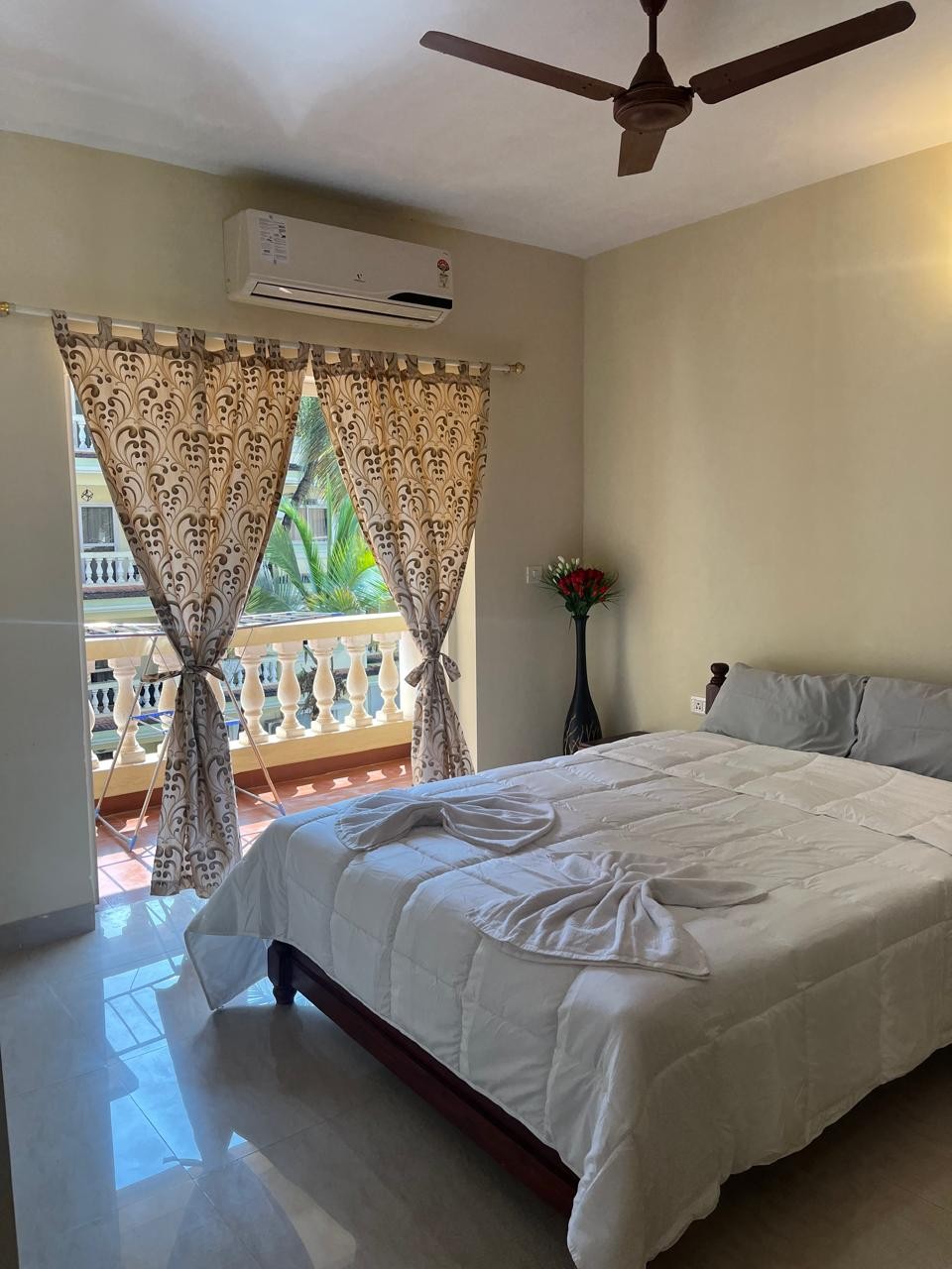 You can message me by clicking on the "Contact host" option with a "Hi" so that I know you are viewing my listing. We can chat from there. Nestled in Benaulim, this is a spacious 2 BHK apartment. Each bedroom has a comfortable bed with an AC. You can cook in this apartment. There re 2 bathrooms with hot or cold running water. The beach is 2-5 minutes walking distance from here