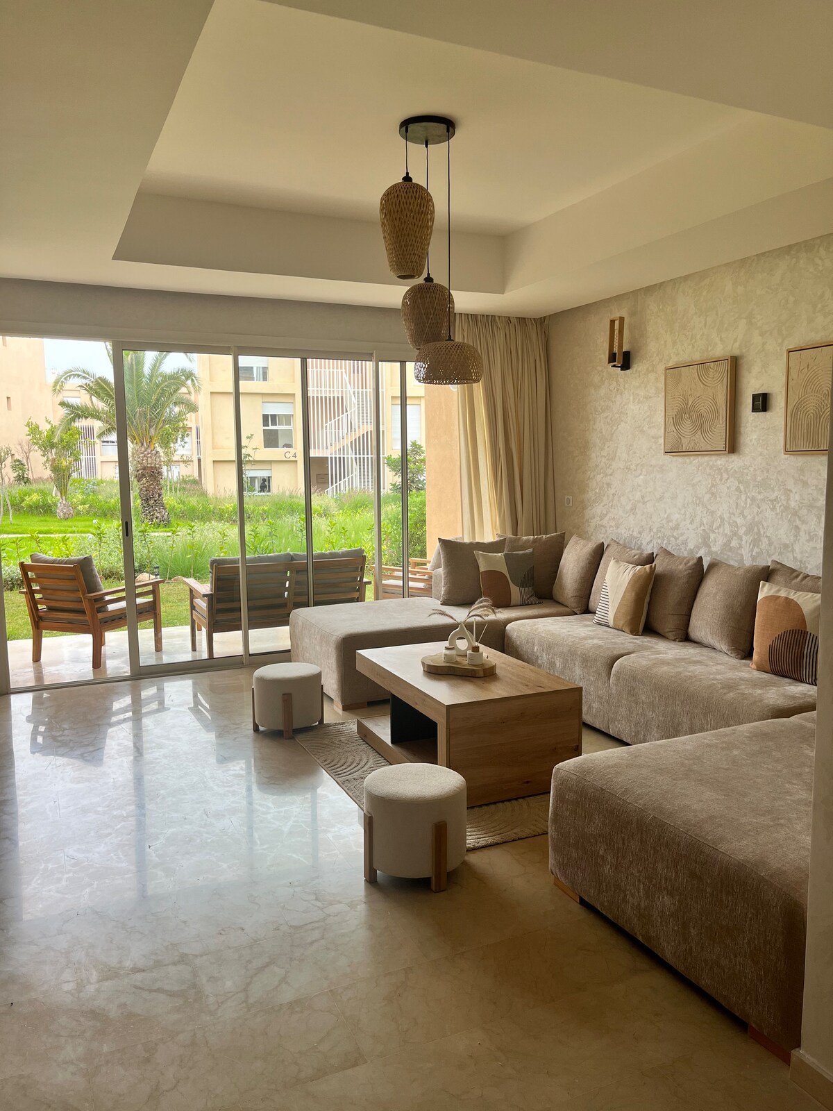 Ocean & Pool View with Private Terrace Taghazout Bay Experience a unique stay in Taghazout Bay in a modern flat offering stunning views of the pool on one side, and the golf course and ocean on the other. Relax on the spacious private terrace, perfect for sunbathing, reading , or enjoying meals with a panoramic view. Located in a secure residence with a swimming pool, just minutes from the beach and the golf this bright and fully equipped apartment is ideal for relaxation by the Atlantic Ocean.