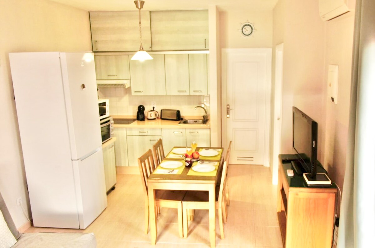 Modern, komplett renoviert und für einen komfortablen und entspannten Kurz- oder Langzeitaufenthalt ausgestattet. Obergeschoss. Eigene Terrasse mit beeindruckendem Meerblick. Panoramafenster vom Schlafzimmer aus. Pools für Erwachsene und Kinder. Klimaanlage im Wohnzimmer und Schlafzimmer. Die Umgebung mit einer Reihe von Attraktionen für jedes Alter. Sandstrand, Wasserpark, Wassersport, Meerestauchen, Tennis-/Squashplätze, Bowling und Minigolf. Supermärkte und ein paar Bars befinden sich ebenfalls in der Nähe. Du wirst alles, was du brauchst, um deinen Aufenthalt unvergesslich zu machen!