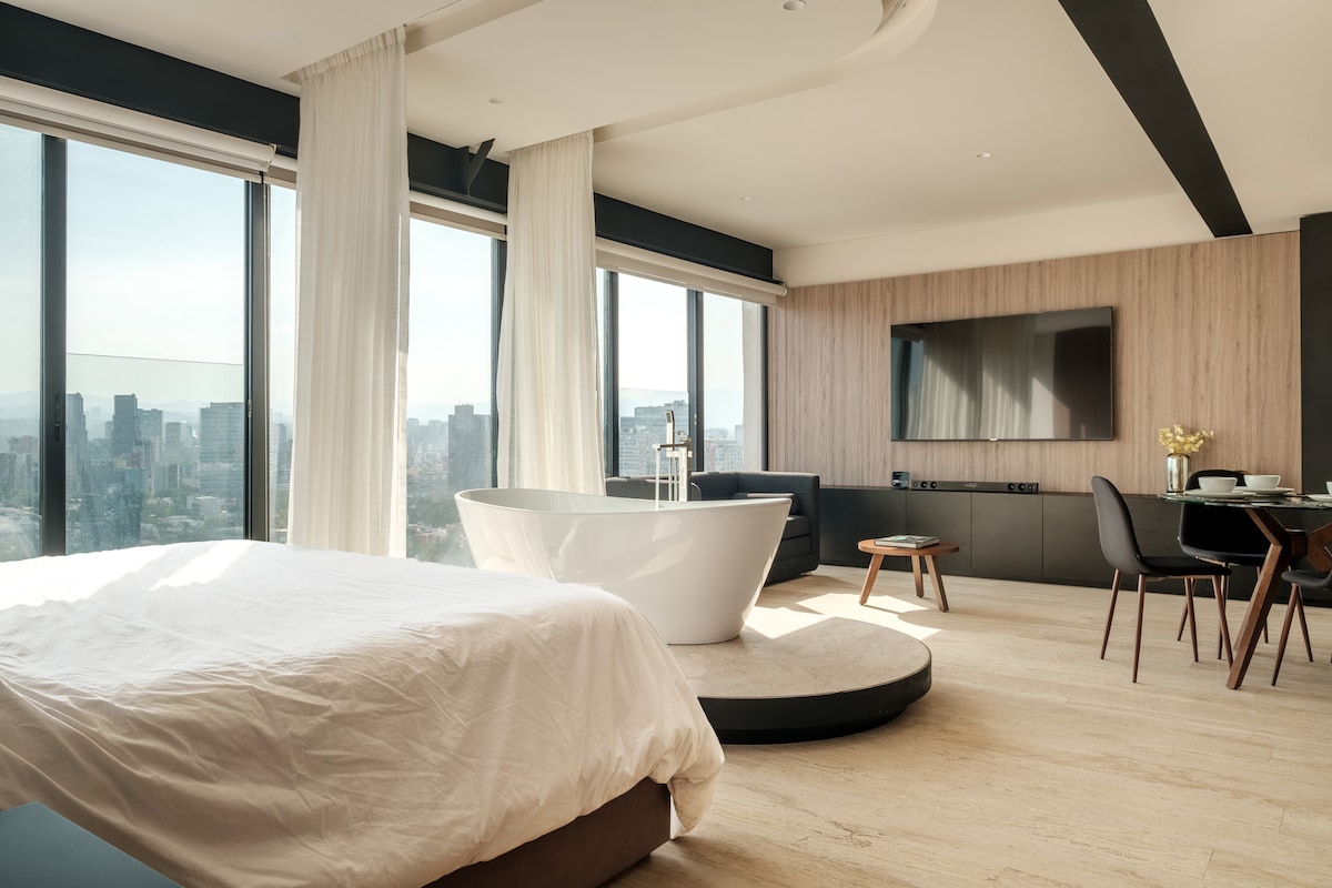 Enjoy a luxurious experience in this centrally located loft with unique views and premium amenities, located in the heart of Roma, steps from Condesa and Reforma streets. ✔ Air conditioning ✔ Parking ✔ Panoramic rooftop ✔ Swimming lane ✔ Washer/dryer ✔ Business center ✔ Gym ✔ Designer furniture ✔ 200 Mbps Internet You'll be located in the neighborhood favored by locals and travelers for its cultural offerings and excellent location to reach the city's most iconic sites.