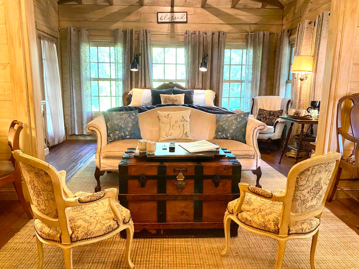 Wir haben eine Gästewohnung im Bauernhausstil mit eigenem Eingang und privater Terrasse mit Blick auf einen privaten See durch die Bäume in den Pinienwäldern von Osttexas. Das Zimmer verfügt über brandneue Geräte sowie eine Kaffeebar. Es gibt ein sehr komfortables Kingsize-Bett und ein Schlafsofa. Es gibt genügend Stauraum. Die Küche ist komplett mit Geschirr und Utensilien ausgestattet. Die Waschküche ist ebenfalls zugänglich. Dieses Inserat ist an mein Haus angeschlossen, aber wir sind ruhige Nachbarn!