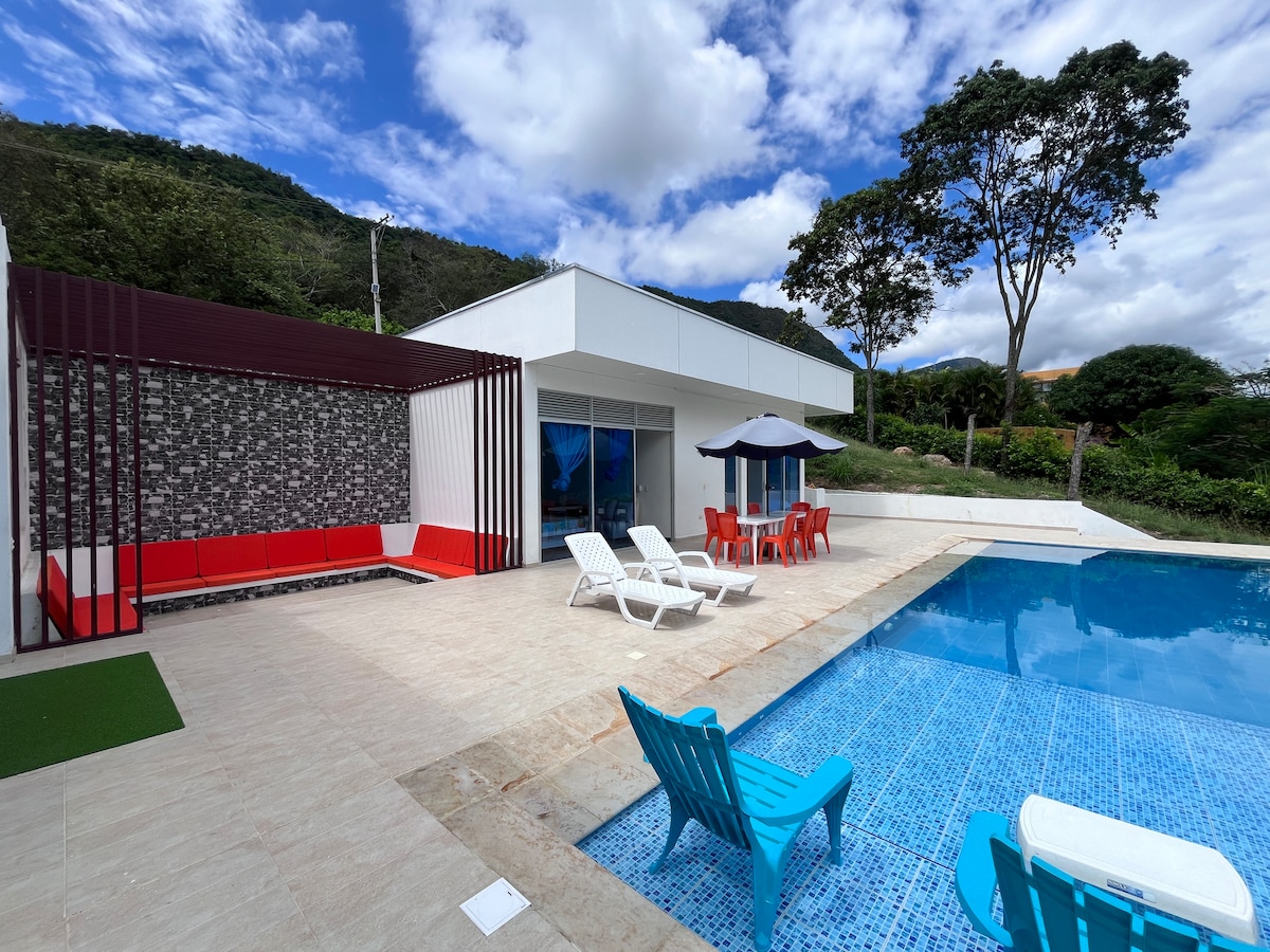 Fantastischer Ort zum Entspannen mit atemberaubender Aussicht auf die Berge! Das Haus wurde kürzlich mit einem zusätzlichen Schlafzimmer ausgestattet und fast vollständig renoviert. Es befindet sich in einer Wohnanlage mit einem Golfplatz, Sandtennisplätzen und Wanderwegen, die einen Fluss überqueren. Ein ruhiger Ort, etwa 2 Autostunden von Bogota entfernt. Privater Pool, Grill, Whirlpool. HINWEIS: Die Kapazität des Hauses beträgt insgesamt 16 Personen. Zu Ostern (Semana Santa) bitten wir um einen Mindestaufenthalt von 7 Nächten, und auch zum Jahresende (Weihnachten, Silvester)