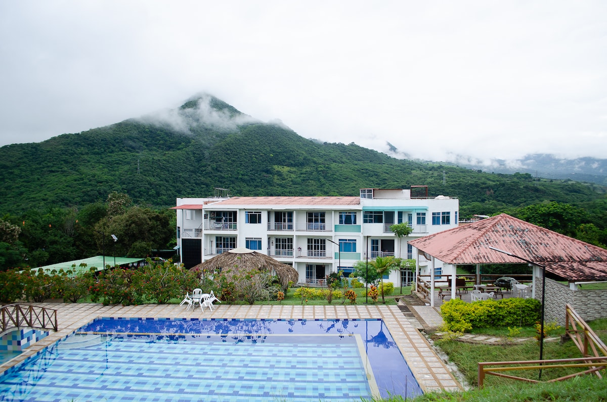 Entdecke deine Zuflucht in Anapoima! Schöne Landwohnung mit 2 Schlafzimmern, Wohnzimmer, Küche, Balkon und Garten. Es verfügt über ein Schlafsofa im Wohnzimmer, das einen fünften Gast beherbergen kann, sodass jeder den Raum ohne Sorgen genießen kann. Genieße den Pool, den Grill, den Kiosk mit Küchenzeile und den kostenlosen Parkplatz. Das Hotel liegt 1 Minute von San Antonio und 7 Minuten von der Innenstadt entfernt und ist der perfekte Ort, um sich zu entspannen, mit der Natur in Kontakt zu treten und ein unvergessliches Erlebnis zu erleben.