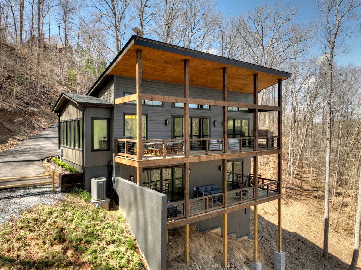 Stargazer✨ ist ein moderner, skandinavisch inspirierter A-Rahmen auf dem Berggipfel mit inspirierender Aussicht, einem sprudelnden Whirlpool und nur wenige Minuten von Weingütern, dem Blue Ridge Lake und allen Feierlichkeiten der Innenstadt entfernt. ♥️ Bitte speichere unseren A-Rahmen, indem du oben rechts ♥️ auf den Klick klickst - das wird dir helfen, ihn später zu finden und es dir leicht zu machen, ihn mit anderen zu teilen! 📽 Smart-TVs ✨ Dimmbare Stimmungsbeleuchtung🕹 Chess, Connect4, Jenga, Cornhole + mehr, voll🧂 ausgestattete,☕️ voll ausgestattete Kaffeestation📡 Highspeed-WLAN,🔑 kontaktloser Check-i