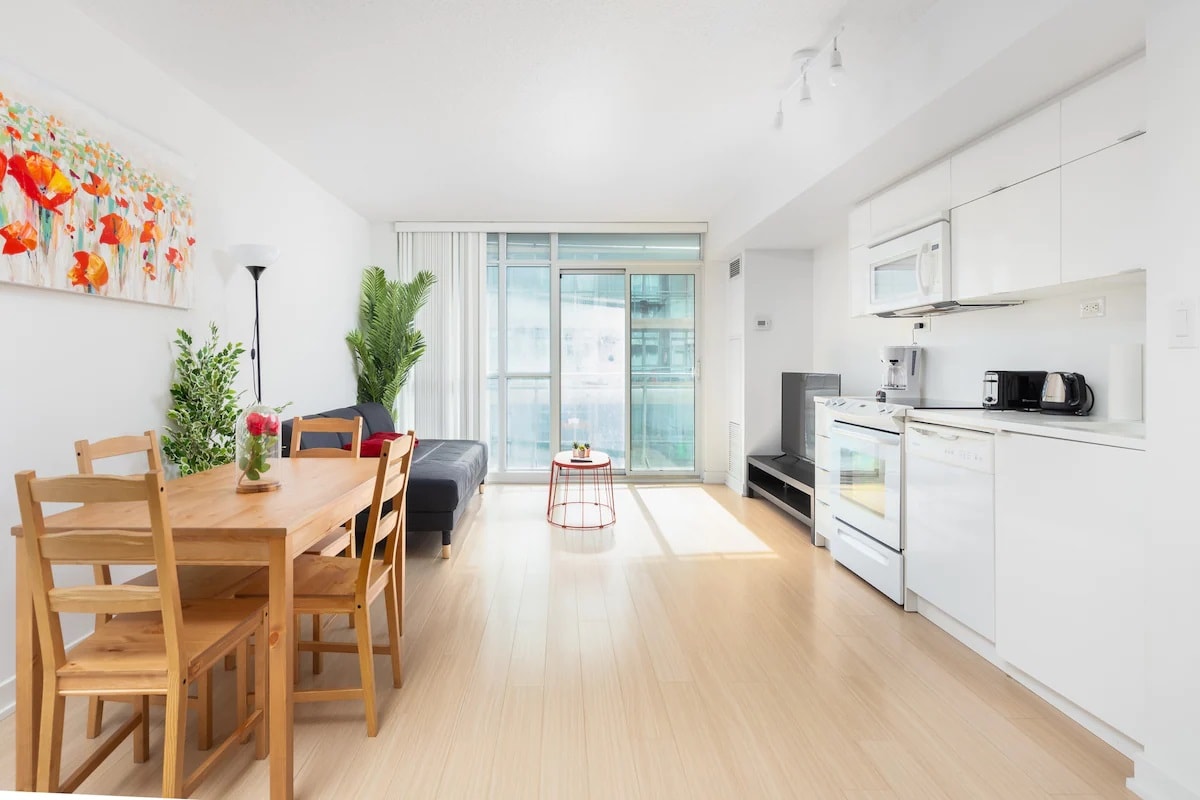 Willkommen in unserer stilvollen 1-Zimmer-Wohnung im Herzen der Innenstadt von Toronto! Unsere Unterkunft bietet den perfekten Rückzugsort für Paare, Alleinreisende Abenteurer und Geschäftsreisende, die einen komfortablen und angenehmen Aufenthalt in der Stadt suchen. Wenn du nach draußen gehst, bist du nur wenige Minuten von vielen Restaurants, trendigen Cafés, Einkaufsboutiquen und aufregenden Nachtleben entfernt. Erkunde den berühmten Yonge-Dundas Square, besuche den nahegelegenen ikonischen CN Tower oder mache einen Spaziergang entlang der malerischen Harbourfront.