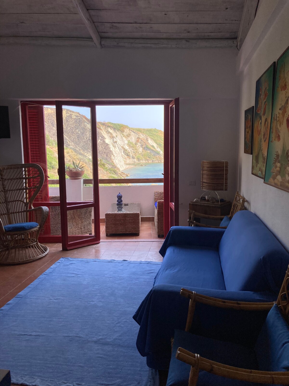 Das Casa Terrazza Blu ist einfach und mit allem ausgestattet. Sie besteht aus: drei Schlafzimmer, zwei Doppelzimmer und eins mit zwei Einzelbetten und eins mit Etagenbetten, Küche, Bad und Terrasse. Das Hotel liegt auf dem Vorgebirge in der geschützten Meeresluft; nur wenige Meter entfernt befindet sich eine Treppe, die zum Meer führt. Reich an Meeresgründen für Schnorchler. Ein ruhiger Rückzugsort vor der Hektik des Reisens. Ein Ort, um sich zu entspannen und den Alltagsstress zu vergessen. Das Haus ist offen für Sonne, Wind und die Stimme des Meeres.
