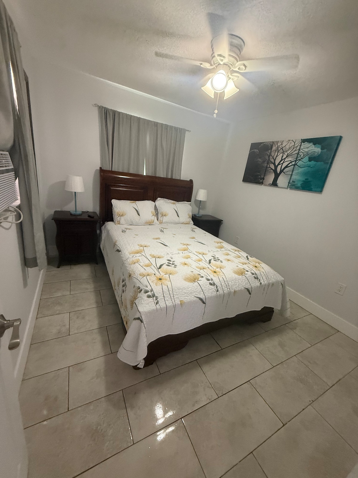 Private apartment with full bathroom, kitchen with a small electric stove and a full size fridge, living room, dining room, a king size bed with a night stand, tv with wifi, independent entrance and parking excellent neighborhood very safe. note: there are no windows it makes the place more quiet to get a good night sleep.