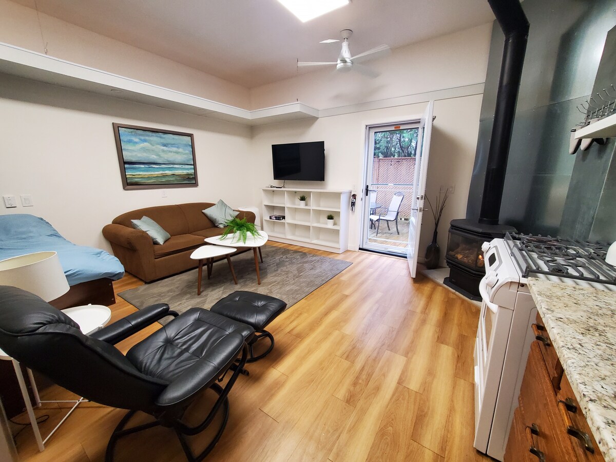 Genieße ein stilvolles Erlebnis an diesem zentral gelegenen Ort. Neu renovierte 1-Zimmer-Walkout-Wohnung in unserem Haus in der Innenstadt von Orangeville. Schritte zum Theater Orangeville, Orangeville Bauernmarkt und Jazz & Blues Festival. Genießen Sie die Abende auf Ihrer eigenen Terrasse in einem privaten Hinterhof mit Blick auf den Garten. Genieße Spaziergänge im Island Lake Conservation Park. Speise in einem der vielen feinen Restaurants oder koche eine Mahlzeit in deiner eigenen voll ausgestatteten Küche.