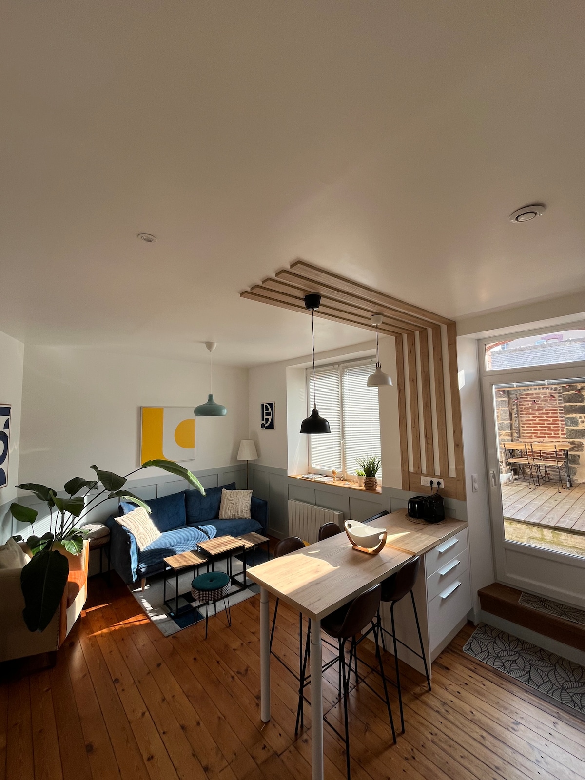 Charmante maison de ville entièrement rénovée, avec terrasse plein sud et jardin clos de murs, au calme dans une petite impasse piétonne. À deux pas de la gare (Paris Montparnasse en 2h15) et à 10 minutes en voiture de la première plage. Idéale pour une halte travail ou un séjour détente, vous profitez d’un environnement paisible tout en restant à proximité immédiate du centre et des transports. La cour sécurisée permet de ranger vélos (location à la gare) en toute tranquillité 🚲