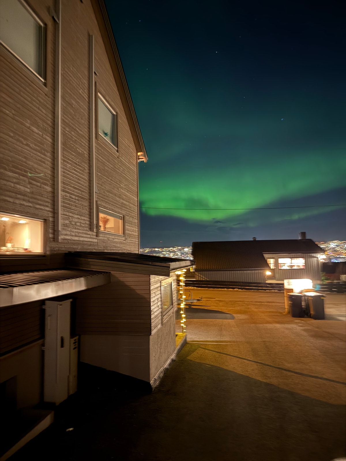 Praktisch schöne Wohnung von ca. 40 m2, mit Küche, Esstisch für 4, fantastischem Blick auf den Eingang zu Tromsø, der Arktischen Kathedrale und der Tromsø-Brücke, Stühlen und Tischen draußen, wo du die Mitternachtssonne von Ende Mai bis Ende Juli oder die Nordlichter im Zeitraum September bis April genießen kannst In der Nähe von Bushaltestelle, Lebensmittelgeschäft, Restaurant), 20 Gehminuten vom Stadtzentrum entfernt. Viele schöne Wanderwege in der Nähe. Kostenlose Parkplätze, aber müssen vereinbart werden, wir empfehlen, dass du im Winter ein Auto mit Allradantrieb mietest, damit du bis zum Haus kommen kannst