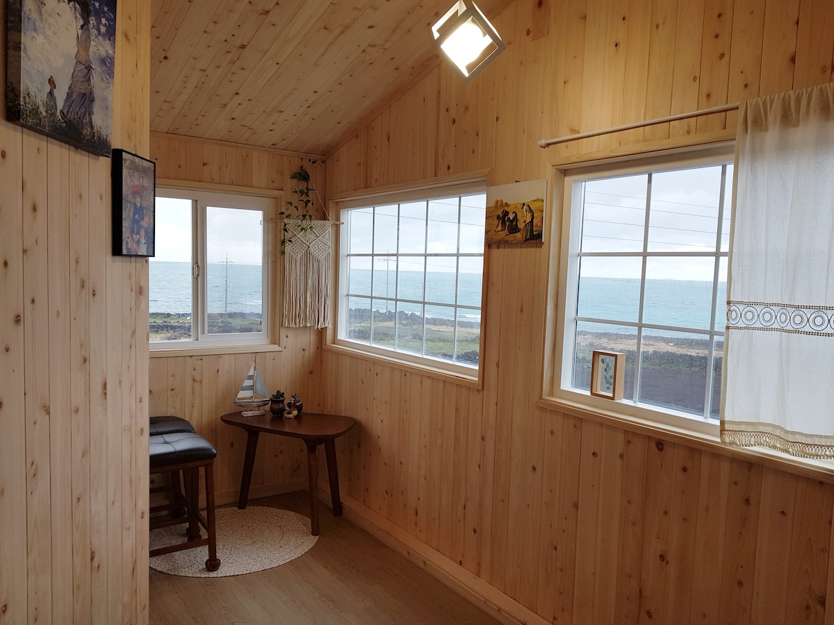 Dies ist eine Unterkunft mit dem geheimnisvollen smaragdgrünen Meer von Jeju als Vorgarten