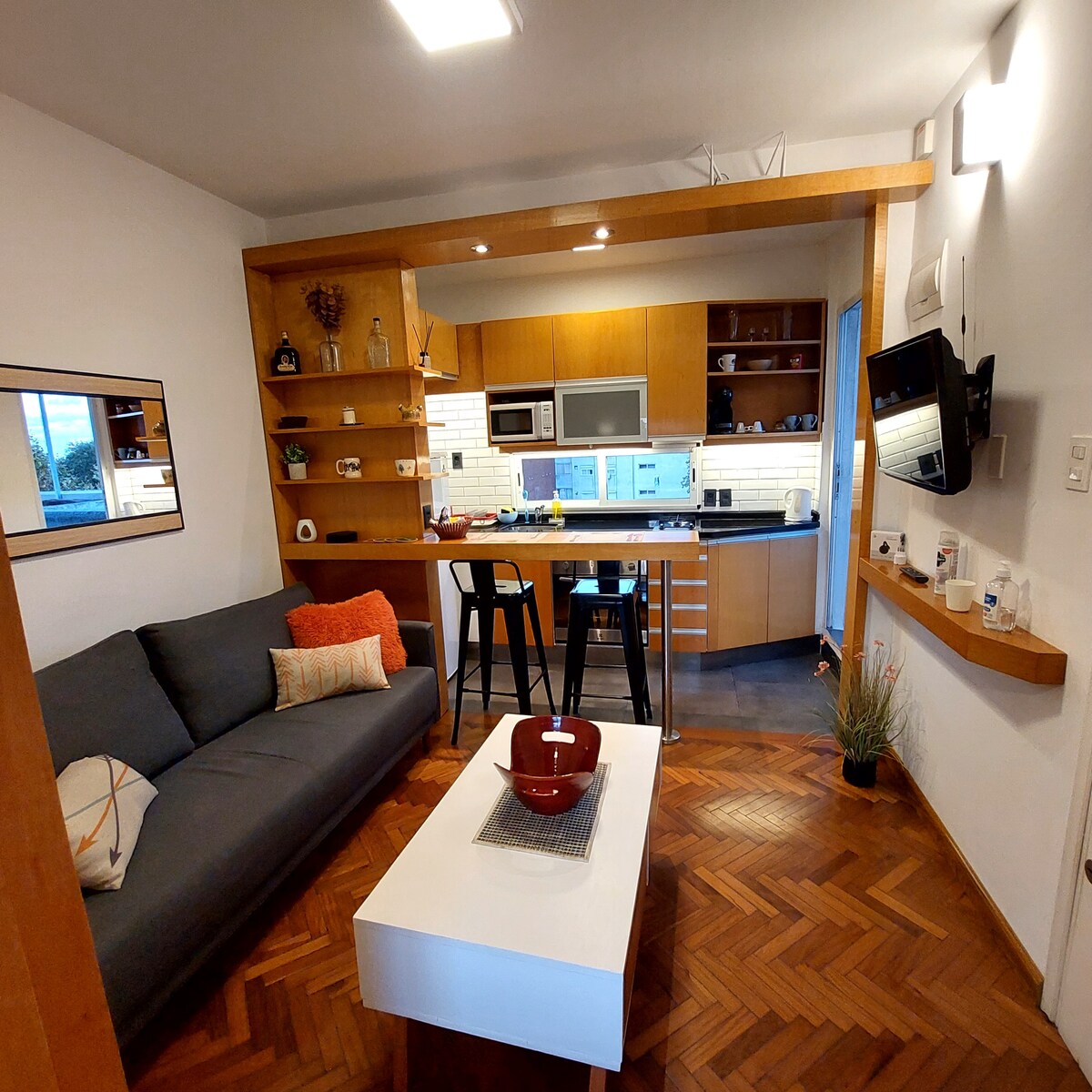 Modern 1-bedroom apartment in Parque Rodó. Bright and quiet, with large double-glass windows. Fully equipped kitchen with fridge, oven, microwave, utensils and tableware. Open living-dining area with 43" Smart TV and a home office space with Wi-Fi. Bedroom with queen bed and balcony access, plus a full bathroom. Excellent location: steps from Parque Rodó and the Rambla, surrounded by cafés, shops, and public transport at the door.