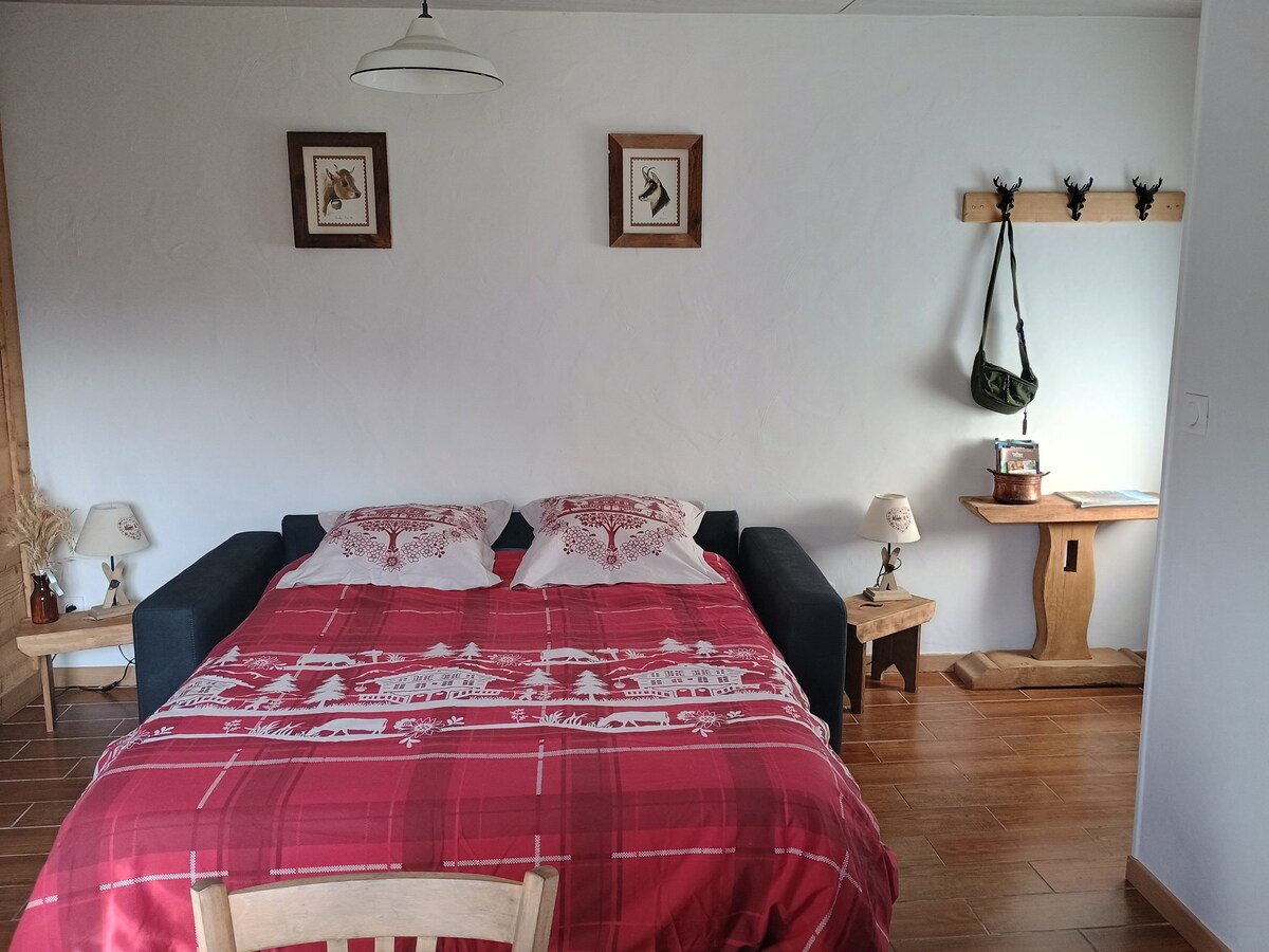 Chalet von 20 m2, ruhig, mit einer Küchenzeile, einem Badezimmer, einem Wohnzimmer mit einem Schlafsofa, einem Fernseher und einem Zwischengeschoss, in dem sich ein Doppelbett befindet. Terrasse mit Gartenmöbeln (Tisch + Stuhl + Hängesessel) Nordisches Bad gegen Aufpreis verfügbar: 2 Wochen lang nicht verfügbar Das Chalet befindet sich neben unserem Hauptwohnsitz, so dass wir Sie während Ihres Aufenthaltes beraten und Ihnen gleichzeitig Ihre Privatsphäre lassen. Bettzeug und Handtücher sind vorhanden.